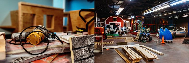 And then September came. A small fire at INK’s kiln set off the sprinklers overnight. The fire was quelled, but the sprinklers kept running. And running. And running. By the time morning came, the facility had flooded. We were supposed to go that day, but for obvious reasons, INK had to be closed. They stayed closed until the beginning of this month. Throughout the entirety of their rebuilding, Henry asked over and over when they would reopen. He was so eager to go play again. When they announced they were close to reopening, Henry was beyond excited. He went from asking weekly to daily to go back. I promised him updates as they came. When I saw them put out a request for volunteers to help with the last of the projects, I offered to photograph the remaining construction and the ribbon cutting. Trust me when I say no one wants me to truly be involved in construction. Documenting through photographs? Well, that I can do.