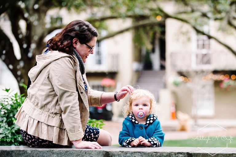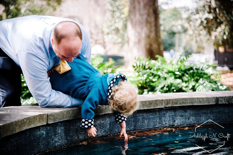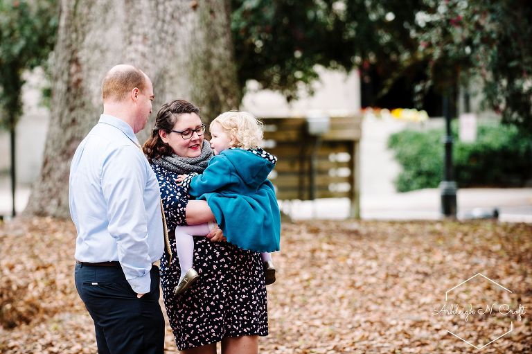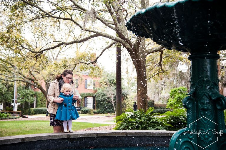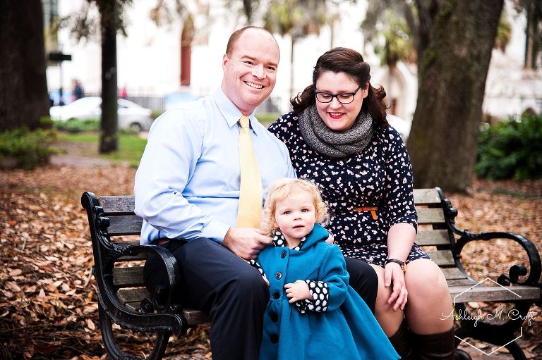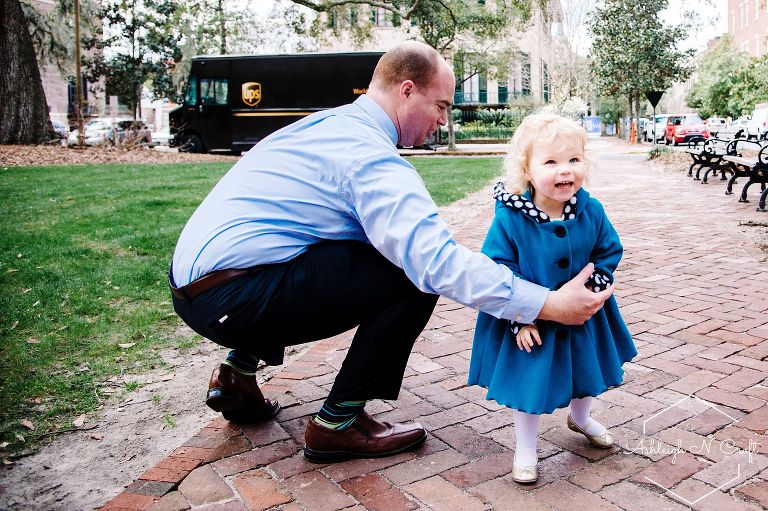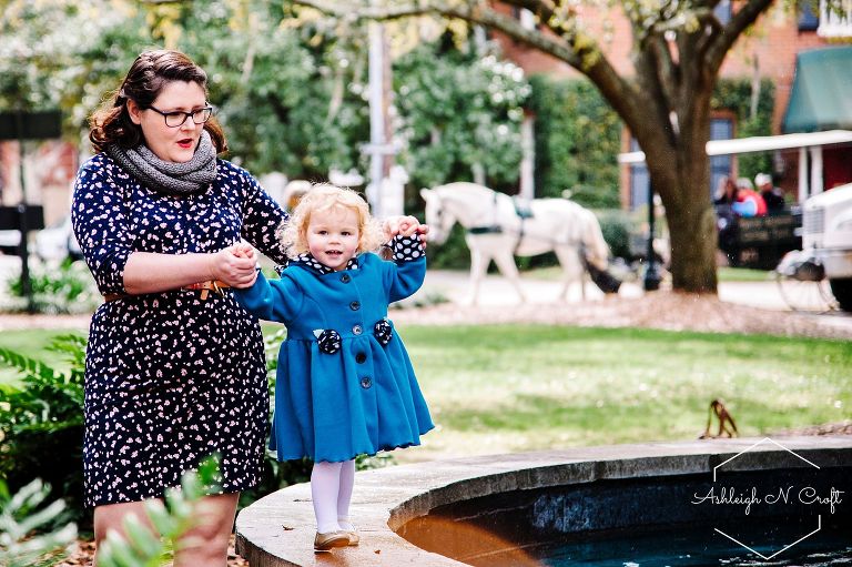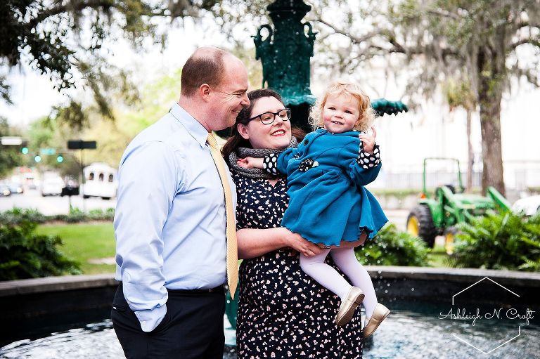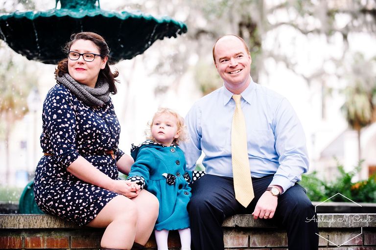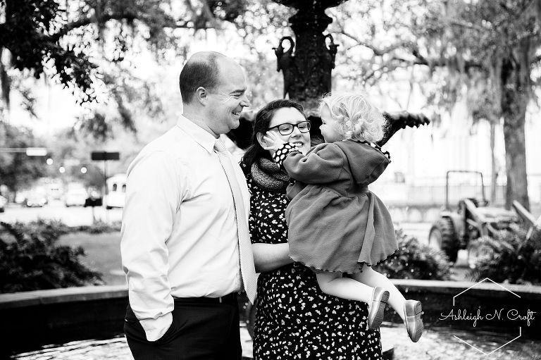 They were married at LaFayette Square in Savannah and chose to have the first part of their family session there when their daughter Bailey turned 2 this past spring. Bailey even wore a dress that looked just like the one her mama wore. It just happened to be too cold that day to show it off.